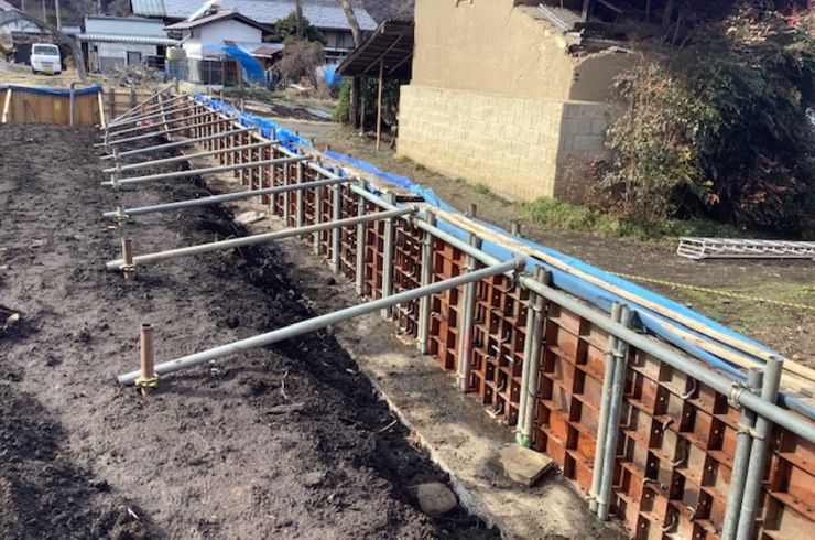 昨年末に解体工事を行ったお家で境界擁壁の工事を行っています。