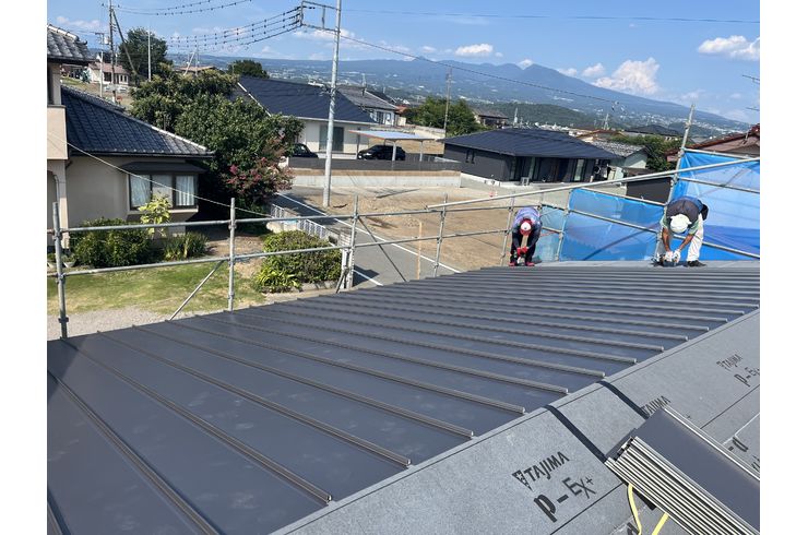 屋根工事は先週末に板金材料で葺きはじめて現在進行中になっています。