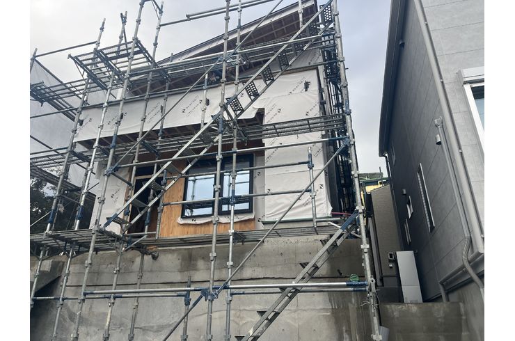 なので工事をしている身からすると自室3階の家の外壁を張っている感じになっています。